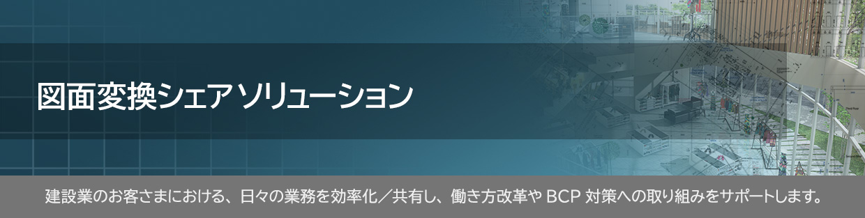 「図面変換シェアソリューション」は、大判プリンター・複合機とクラウドストレージを連携した建設業務向けテレワーク環境支援サービスです。