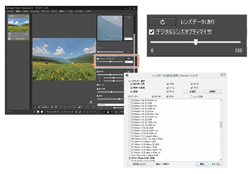 キヤノン製EF/RFレンズの特性をフルに引きだすデジタルレンズオプティマイザ。