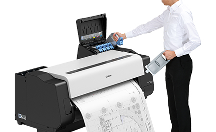 プリントヘッドおよび用紙搬送、カット処理の最適化により高速印刷を実現。A1横サイズの図面※1(インクジェット用普通紙)を約18秒で印刷できます。また、ページ間処理などの印刷シーケンスの最適化により、連続印刷速度を従来モデル※2に比べ約18%高速化し、A1横サイズで3.2ppmを実現※1しました。