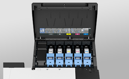 TXシリーズすべてにおいて、最大700mlの大容量インクタンクを採用。各色の使用頻度に応じて3種類のタンク容量を選択、異なるサイズでも組み合せて使用できます。