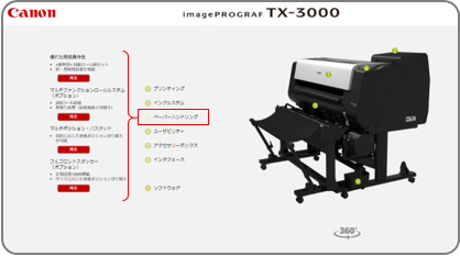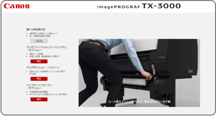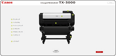 「バーチャルショールーム」では、大判プリンターimagePROGRAFの操作感をWEB上で疑似体験できるオンライン上のショールームです。商品をさまざまな方向から確認できるだけではなく、操作方法を体験したり、各種機能についても、動画でご説明致します。