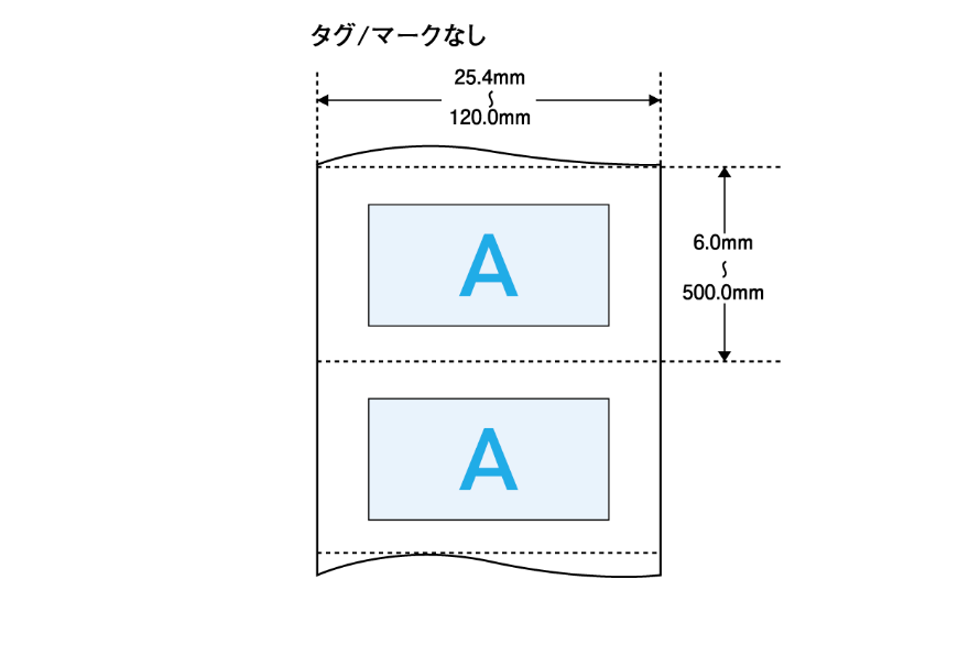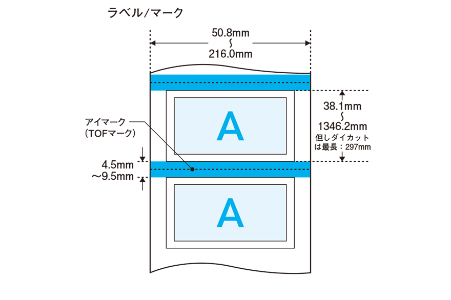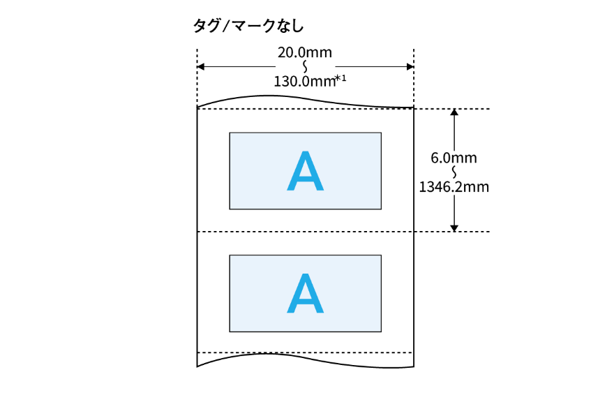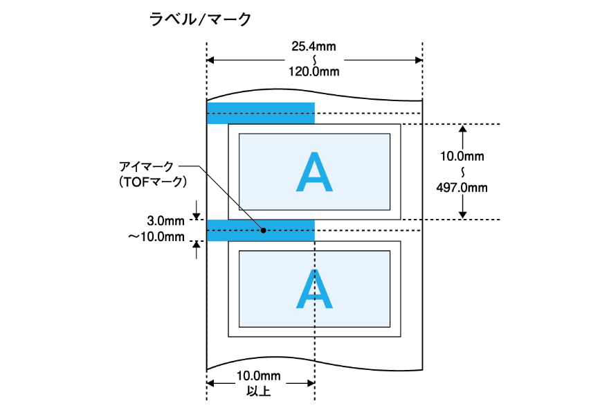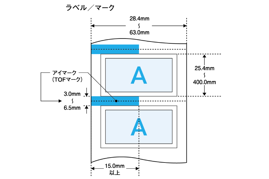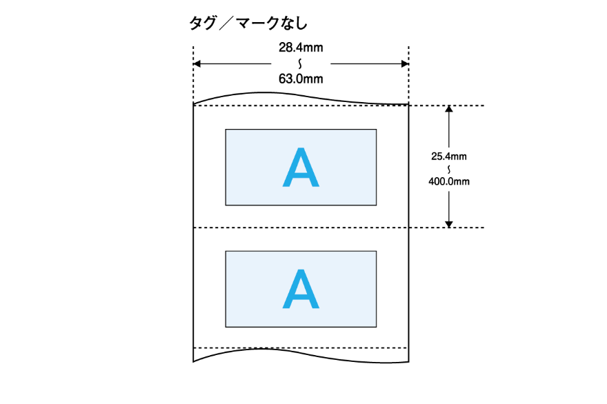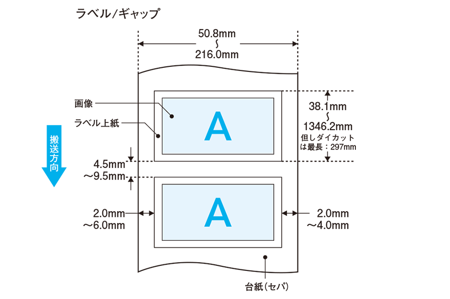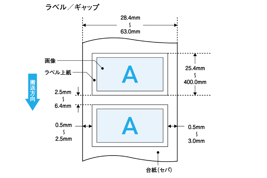 • オートカッターユニット使用の場合は、ラベルサイズ(幅×長さ)やラベル間ギャップが異なります。