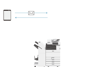 「uniFLOW Online」※1により、登録ユーザーだけでなく、外部のお客さまの印刷ニーズにも効率よく対応可能です。お客さまは、印刷したいデータを指定のEメールアドレスに送信。返信メールで通知されるジョブコードを複合機に入力し、簡単に印刷できます。