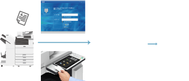クラウドサービスとの連携を広げる「uniFLOW Online」※1を使うことで、スキャンした文書を各種クラウドサービス※2に直接送信できます。クラウド環境でスムーズな情報共有を促進し、業務効率の向上を支援します。