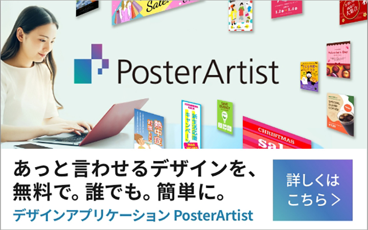 ウェブアプリケーション “PosterArtist”チラシやポスターのデザイン制作をサポートする無料のウェブアプリケーション。PCブラウザにアクセスして操作が可能。デザイン制作がかんたんに行えます。