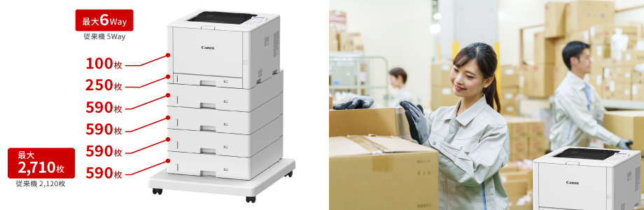 【解決】多段給紙に対応しさまざまな用紙をあらかじめセット可能です