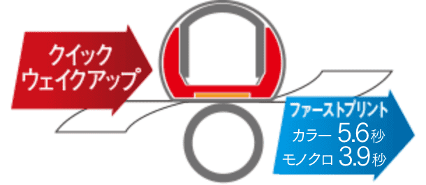 ファーストプリント カラー:5.6秒、モノクロ:3.9秒 クイックウェイクアップ