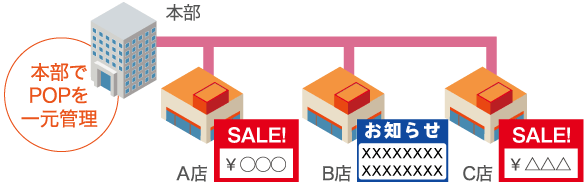 本部で作成した各種POPデータを、店舗で効率的に印刷