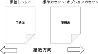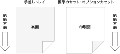 標準カセットやオプションカセットを使用する場合、用紙を縦に向けて印刷面を上にしてセットします。
