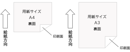 A3サイズの用紙は縦送りになります。用紙を縦に向けて印刷面を下にしてセットします。