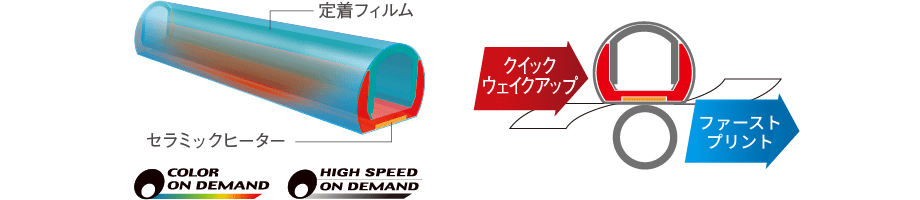 「オンデマンド定着方式」「クイックウェイクアップ」