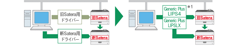 「Generic Plus LIPS4 Printer Driver」、「Generic Plus LIPS LX Printer Driver」は、サテラ/imageRUNNER ADVANCEであれば、新しい機種に入れ替える場合でも、引き続き同じドライバーを使用できます※1。そのため、新たにドライバーをインストールする手間がありません。