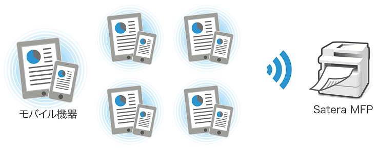 パソコンとケーブルで接続しなくても、ワイヤレスでプリント&スキャン。ケーブルレスだから置き場所を選ばず、オフィススペースをより快適に使えます。また、IEEE802.11b/g/nに対応し、最大72.2Mbpsの高速通信を実現。さらに「WPA」、「WPA2」に対応し、セキュリティー面でも安心してご利用いただけます。