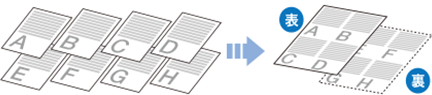 2枚の原稿を縮小して1枚にまとめる2in1機能に加え、4枚分の原稿を1枚におさめる4in1機能も搭載。両面コピーと組み合わせれば、最大で8枚を1枚に集約できます。