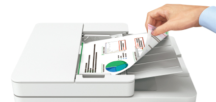 2つの読み取りセンサー(CIS)を搭載することで、スキャンしたい原稿の表と裏を一度に読み取れます。また原稿の積載枚数を50枚まで可能にすることで、取り換える手間を省きます。