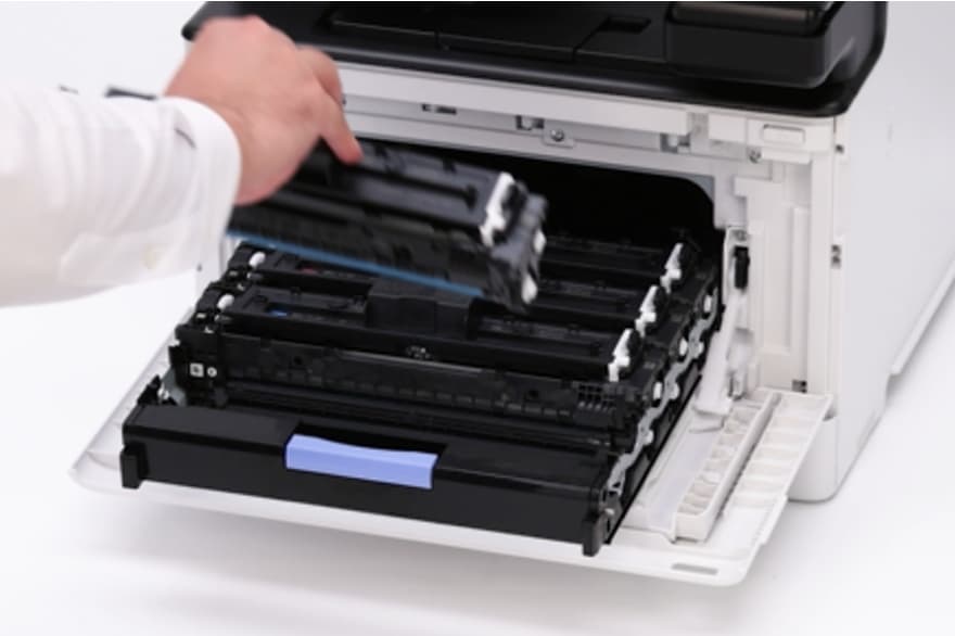 ドラムとトナーを分離・装着する必要がなく、手を汚したり、破損や画像不良の恐れを減らします。トナーカートリッジを入れるだけで直感操作が可能です。