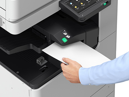 いつでも好きなときに原稿を綴じることができる便利なマニュアルステイプル機能を搭載しました。コピーするためにホチキスを外した原稿も、スキャン後すぐに綴じ直すことが可能。原稿をセットするだけで、自動でステイプルされるので、スムーズに用紙を綴じることができます。