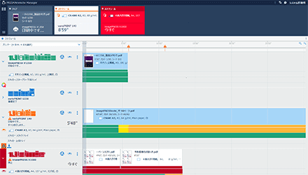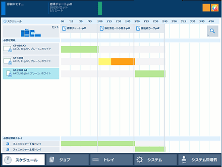 印刷予定時間をグラフで表示します。用紙/消耗品の補充や用紙取り出しのタイミングがひと目で把握できるので便利です。