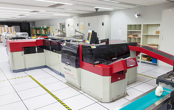 お客さまのシステムからデータを受領した後、帳票の加工生成‧印刷‧封入‧封かん‧圧着‧発送代行など一連の業務工程をお任せいただいています。データ引き渡しから発送までのリードタイムを圧縮したいというご要望は、夜間印刷対応で実現。堅牢なセキュリティ環境と、25年以上に渡り培った基幹プリンティングのノウハウを生かし、安心で安全なサービスが提供できるよう日々業務にあたっています。