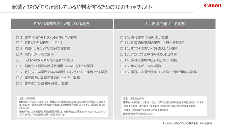 派遣か、アウトソーシングか、検討するためのチェックリスト