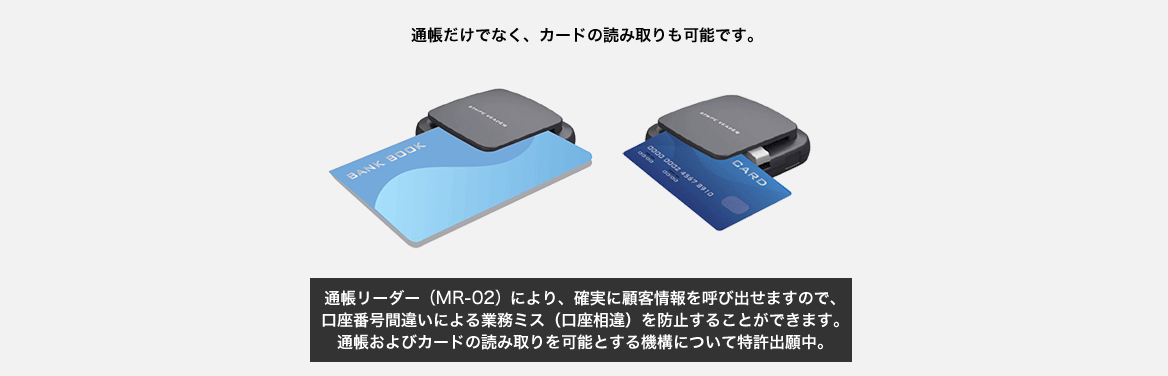 独自開発の通帳リーダーが、口座相違を未然に防止