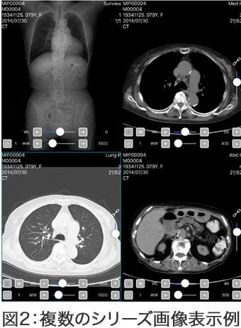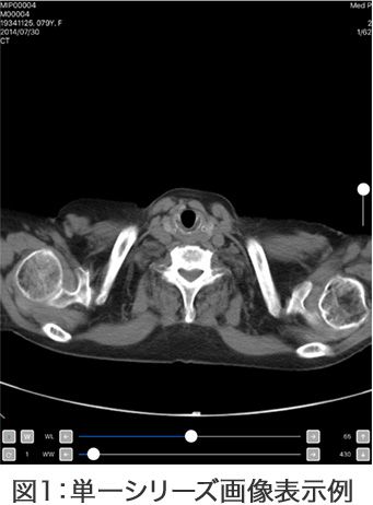 「Medical Image Place Viewer」(iOS/Androidに対応)によって、医療従事者が画像参照に必要な機能(画像の拡大/縮小・ウィンドウレベルの調整など)を実装しています。