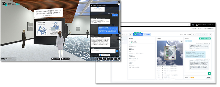 出展社 - 来場者間は、テキスト・ボイスチャットでコミュニケーション。