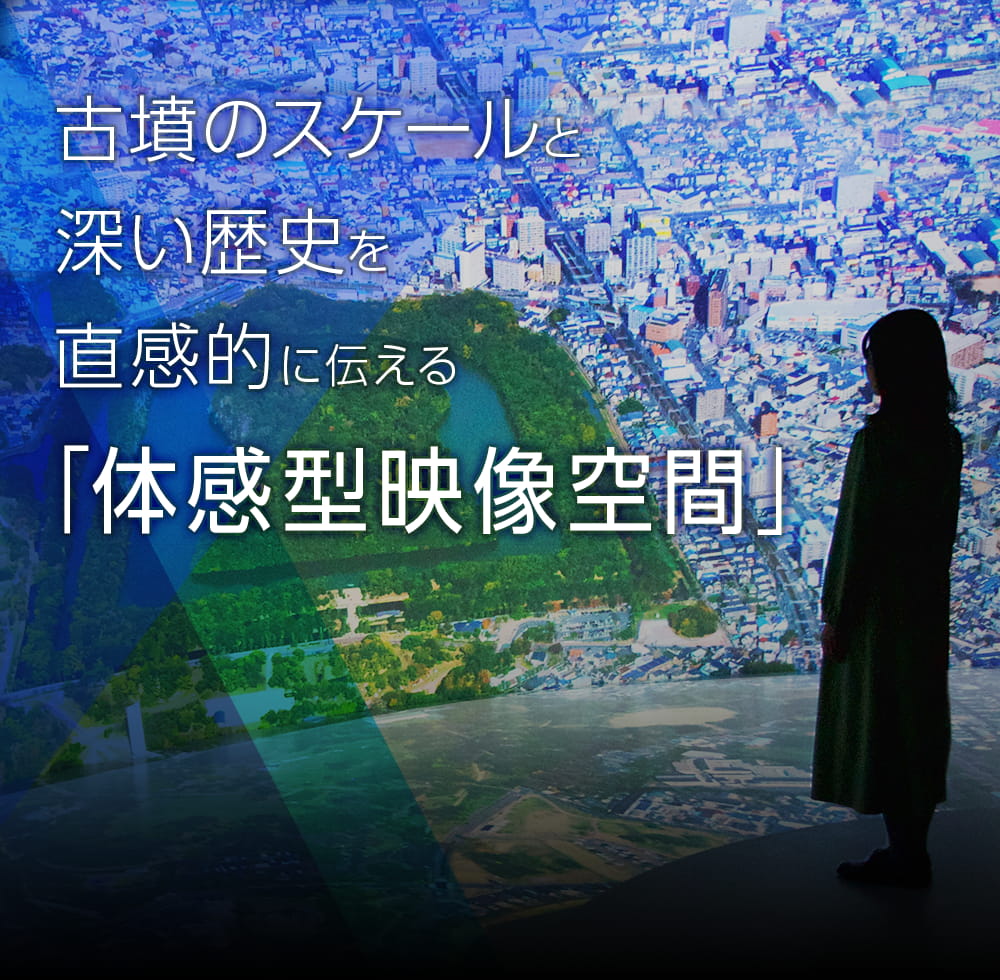 大阪府堺市は「百舌鳥古墳群ビジターセンター」内に体感型映像空間を構築。あらゆる人が直感的に地域の魅力を感じられる仕組みを創り出しました。