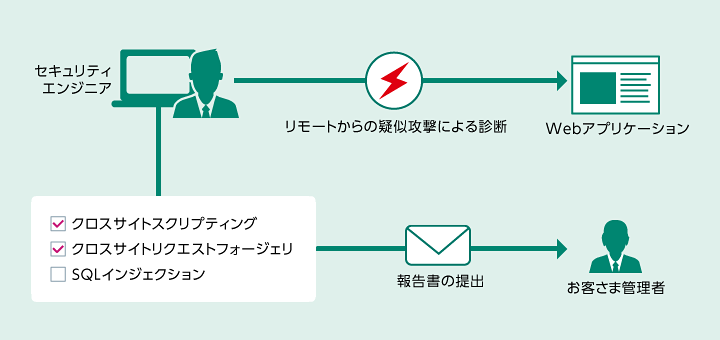 脆弱性診断は、Webアプリケーションやサーバー、クラウドサービスの脆弱性を発見する調査サービスです。ツール診断とエンジニアによる手動診断があります。診断を行うことで、対策状況を把握し、必要な対策や課題を明確にできます。