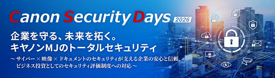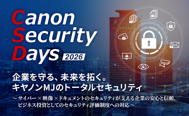 キヤノンマーケティングジャパン株式会社(本社:東京都港区、代表取締役社長:足立正親、以下キヤノンMJ)は、セキュリティイベント「Canon Security Days 2026」を開催します。2026年2月18日(水)には東京都港区(品川)の本社で、2月24日(火)~26日(木)にはオンラインにて開催し、リアルとオンラインを組み合わせたハイブリッド形式でお届けします。本イベントでは、経済産業省の「セキュリティ対策評価制度」の基準に対応するソリューションや、キヤノンMJグループが提供するサイバー・フィジカル・ドキュメントの3領域を包括する「トータルセキュリティ」のコンセプトを紹介します。さらに、神戸大学 名誉教授 森井昌克氏、株式会社圓窓 澤円氏による特別講演をはじめ、企業のセキュリティ課題解決に役立つ多彩なコンテンツをご用意しています。