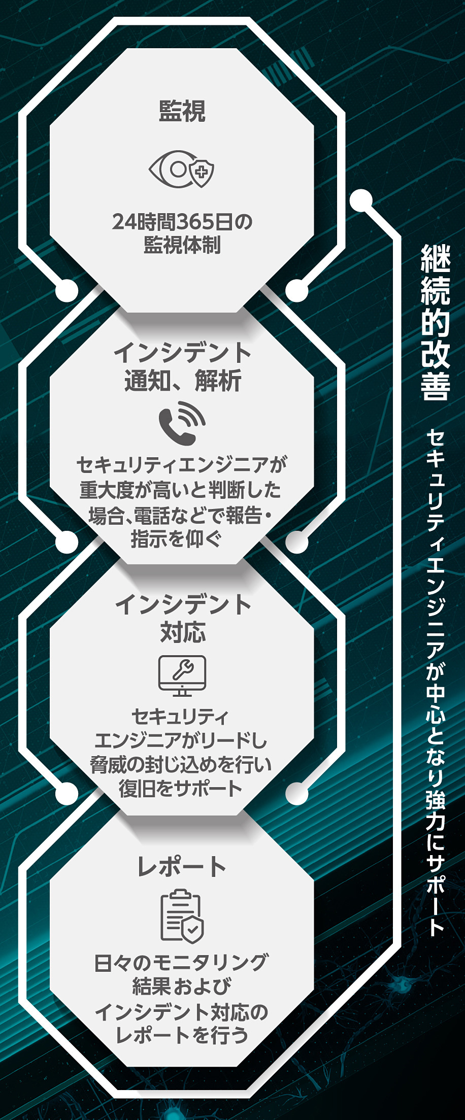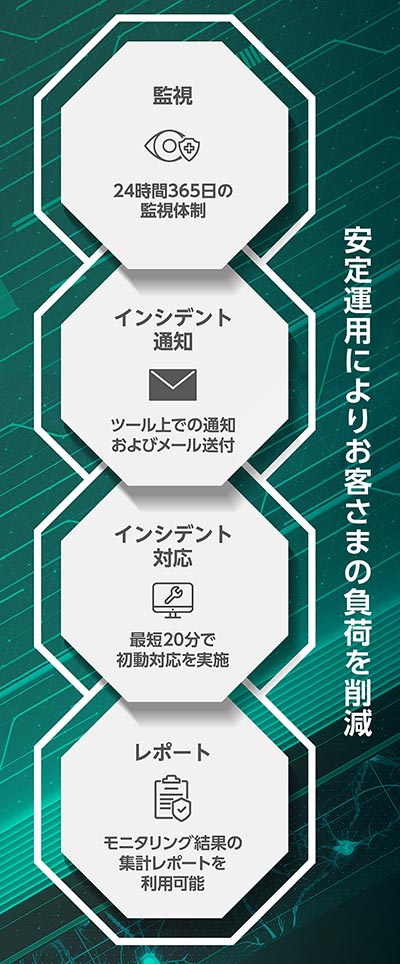 | 脅威監視 | 24時間・365日の監視体制 | |