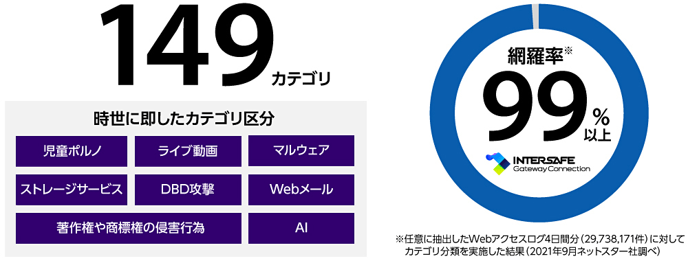 • 業界最大級、Webフィルタリング149カテゴリ