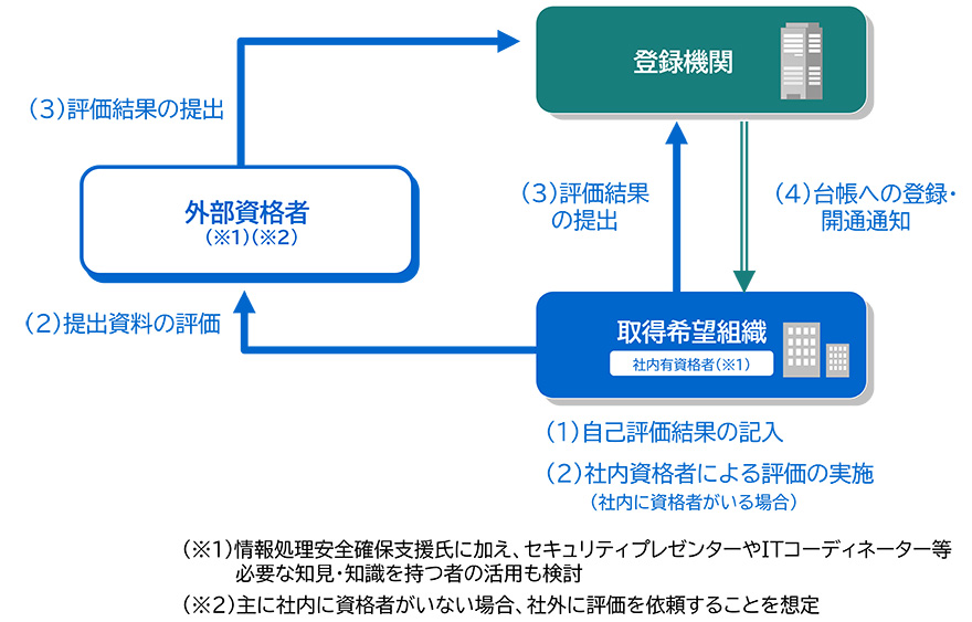 (3)取得希望組織または社内外の資格者は、登録機関に評価結果を提出