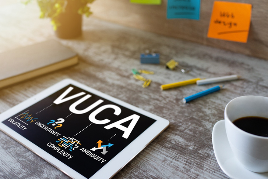 VUCA(ブーカ)とはVolatility(変動性)、Uncertainty(不確実性)、Complexity(複雑性)、Ambiguity(不透明性)の頭文字を取った言葉で、「これから何が起きるか予測がつかない」「先行きの見通しが困難」「問題が複雑化している」など、昨今の社会情勢を指して「VUCA時代」と呼びます。