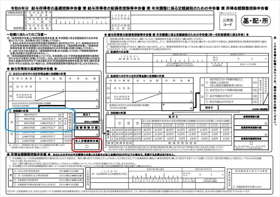 控除を行う際は、国税庁発行の「年末調整計算シート(令和6年用)」または「令和6年分給与所得に対する源泉徴収簿」の余白部分を活用します。