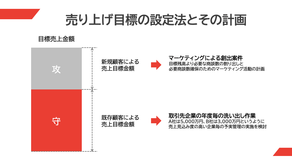 でないと、新規開拓でどれだけの数字を取ればいいのかの目安もありません。