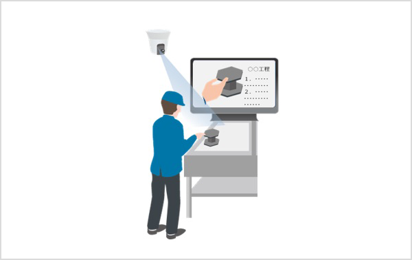 ネットワークカメラを活用して、作業者の手元を常時撮影し、作業状態を映像解析により可視化しながら、作業手順通りに進められているかを判定するシステムです。新人の作業習得の手間を低減することが可能です。