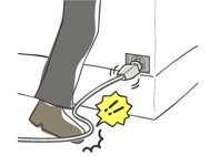 (例)電源コネクタ部分が通路側に面していて、ぶつけるなどの衝撃を与えたり、電源コードに誤まって足を掛けてしまう可能性がある。