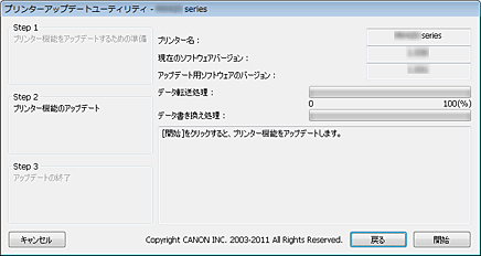 [開始]をクリックできない場合は、プリンターがアップデートの対象外である可能性があります。