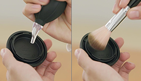 ブラシ&ブロアーでボディーキャップの裏を掃除します。
