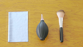 クリーニングクロス、ブロアー、ブラシを使用します。