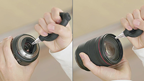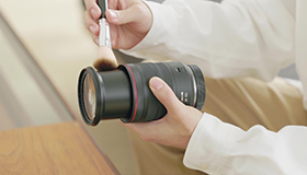 ブロアーを使ってレンズ表面のホコリを落とします。