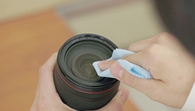 レンズ表面に指紋や汚れが付着していたら、クロスで優しく拭きます。※