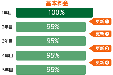 自動更新を申し込まれた場合、次年度以降の基本料金が5%割引になります。